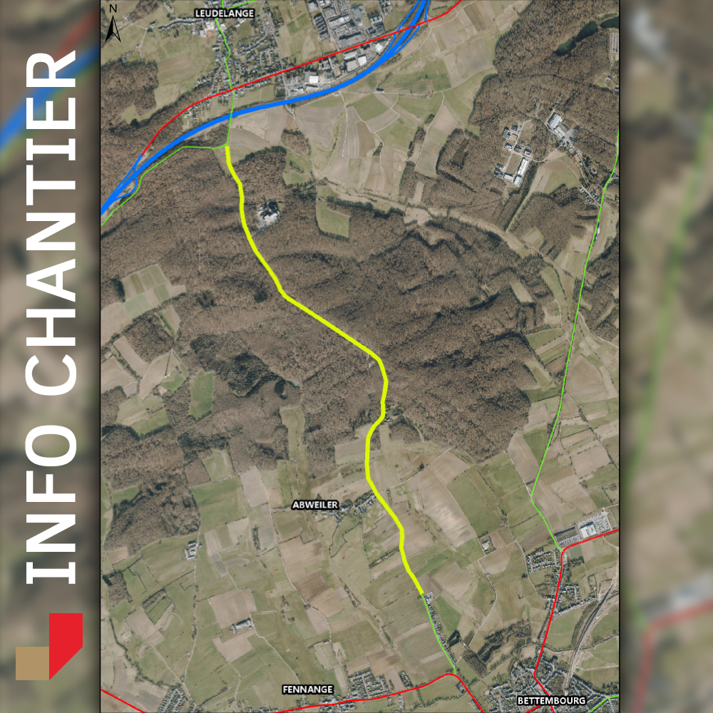 Le CR163 entre Bettembourg et Leudelange ne sera accessible qu’en direction de Leudelange le mercredi 10 décembre 2025 entre 07h30 et 16h30. La route de Leudelange vers Bettembourg sera fermée. Une déviation sera indiquée sur place et passera par Pontpierre.