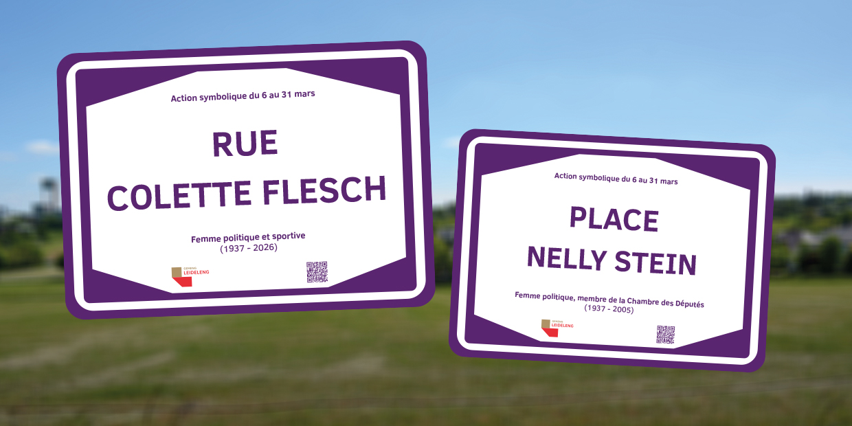 L’action « Affichons l’égalité 2026 » est également organisée cette année dans la Commune de Leudelange. Depuis plusieurs années, la commune participe à cette initiative afin de promouvoir l’égalité. À cette occasion, plusieurs rues sélectionnées de la commune sont temporairement renommées. D’Aktioun gëtt gläichzäiteg mat der Rue Hélène Entenich-Wivenes ageweit.
