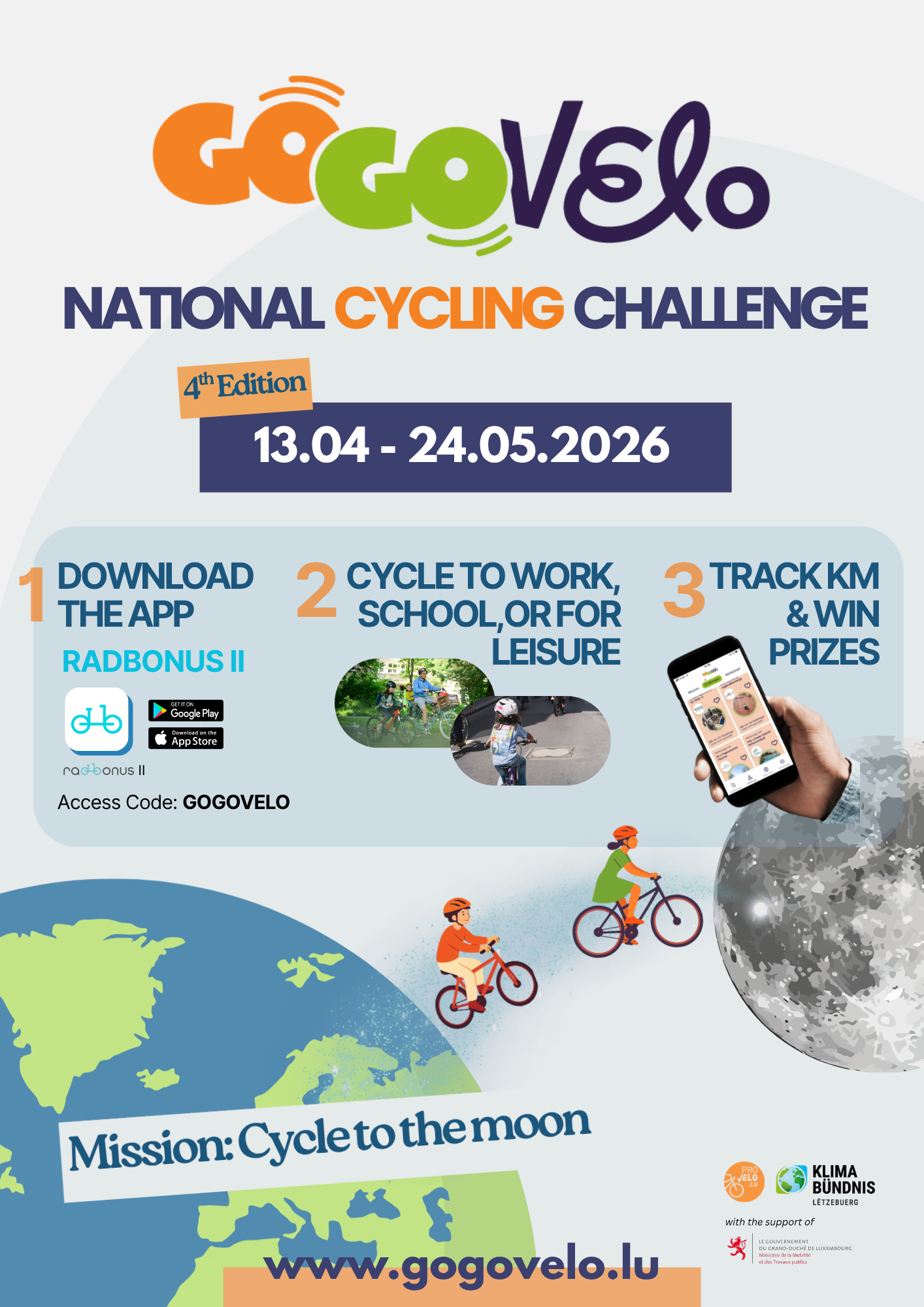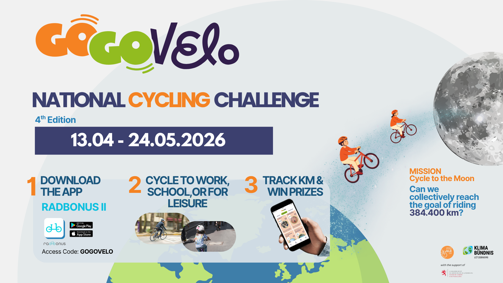 From 13 April to 24 May, kilometres will be collected again on a national level. Last year, the 384,400 km to the Moon were narrowly missed. So let’s give it everything this year!
